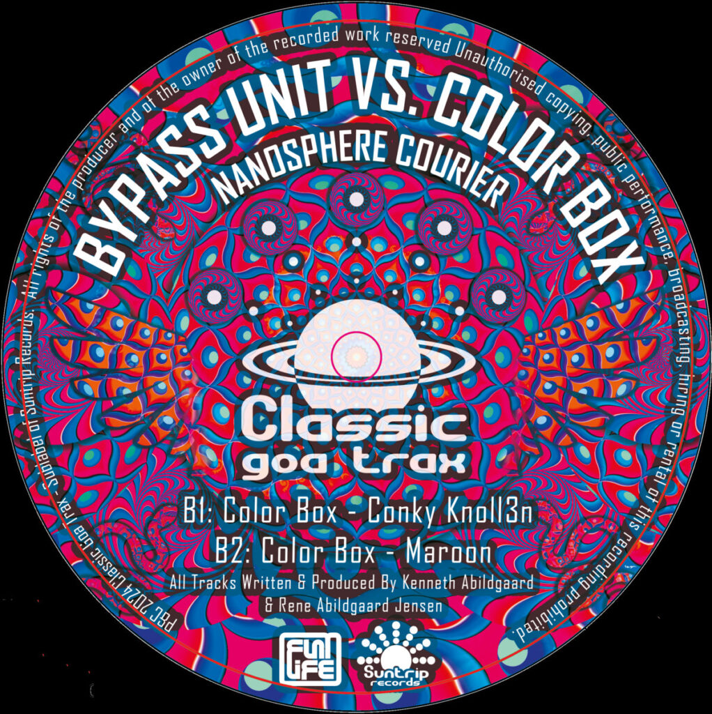 On the B-side, you’ll find Conky Knoll3n, a previously unreleased Goa Trance track that first saw the light on the Classic Goa Trax compilation by Suntrip, alongside Maroon, arguably the best Colorbox track from the Train to Chroma City release.